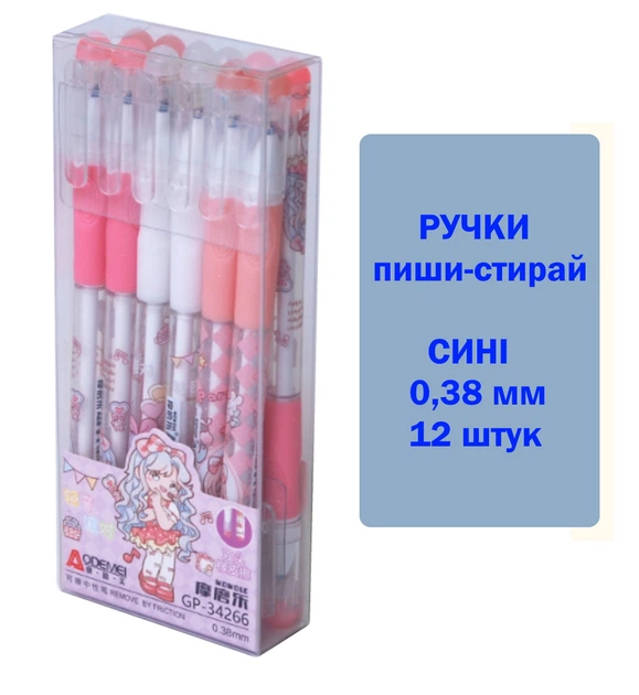 Ручки гелеві "Пиши-стирай" сині, "Girl", 0,5мм, Упаковка 12 штук
