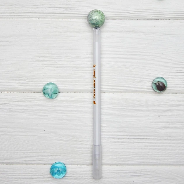 Ручка гелева чорна, 0,5 мм Магічна куля зелена