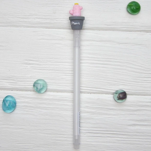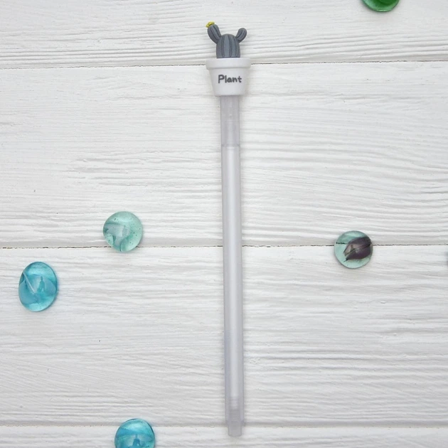Ручка гелева чорна, 0,5 мм Кактус сірий