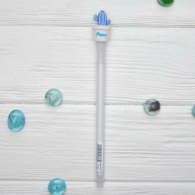 Ручка гелева чорна, 0,5мм Кактус блакитний з білим