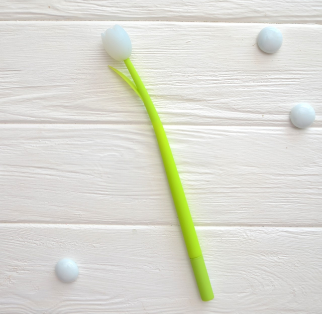 Ручка гелева чорна, 0,5 мм Квітка біла люмінофорна