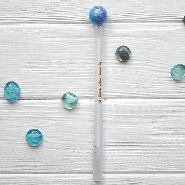 Ручка гелева чорна, 0,5 мм Магічна куля блакитна
