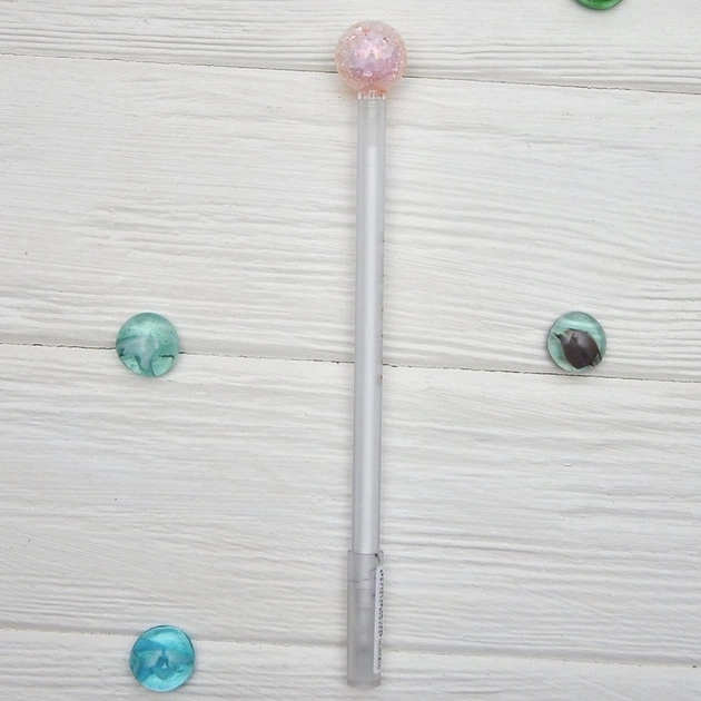 Ручка гелева чорна, 0,5 мм Магічна куля рожева