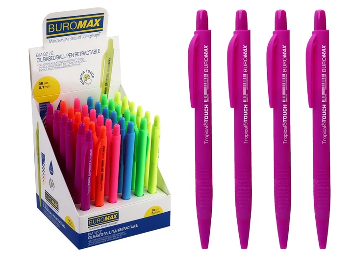 Ручка автоматична масляна Buromax TropicalTouch, 36 шт., синій, 0.7 мм, BM.8272