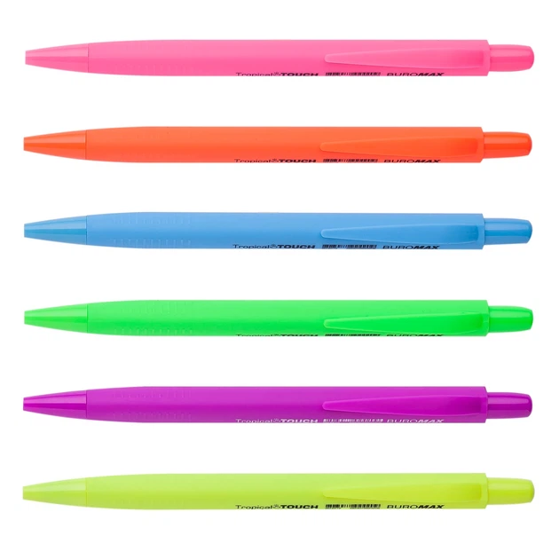 Набір з 6 автоматичних олійних ручок Buromax Tropical Touch 0.7 мм Синій (BM.8272.Z)