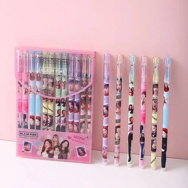 Набір ручок пиши-стирай Blackpink Блекпінк кейпоп kpop 12 штук синій колір (SVS)