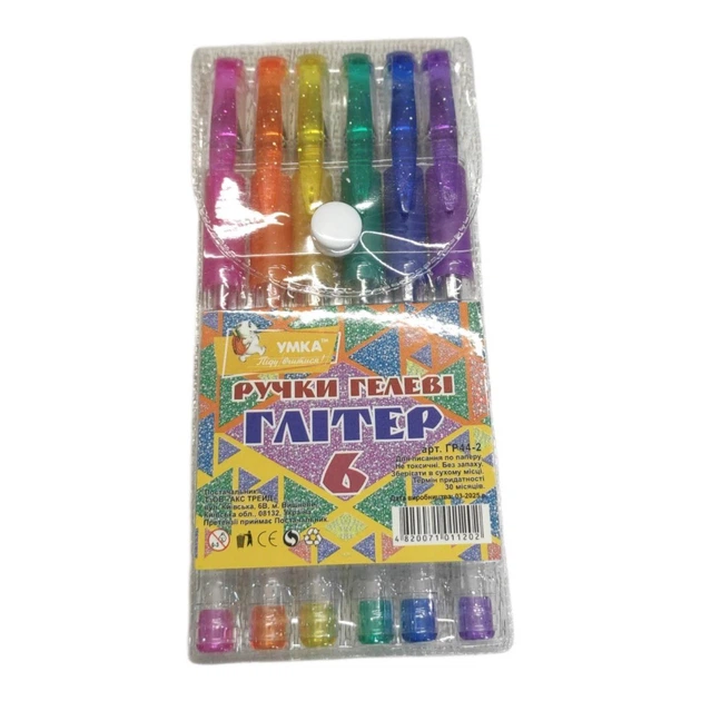Набір ручок гелевих з блиском 6 кольорів, в блістері AoXing (GB-205-6)