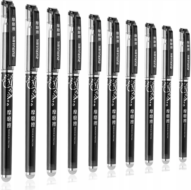 Набір ручок гелевих пишуть стирають чорні набір 10 штук для школи офісу дому