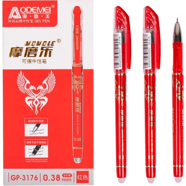 Набір ручок гелевих Aodemei пиши-стирай 0,5 мм, червона 3176-RD 12 шт.