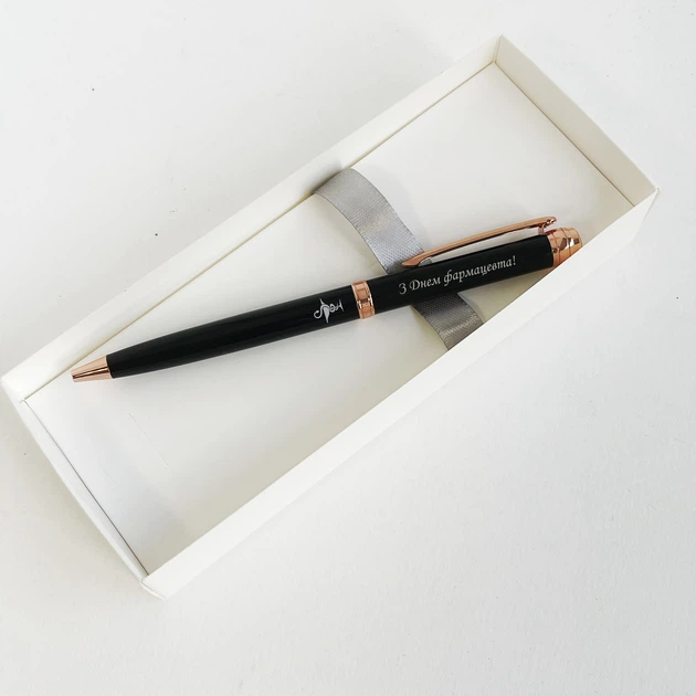 Тонка ручка чорна з золотом для фармацевта з гравіюванням привітального тексту (напис можна змінити)