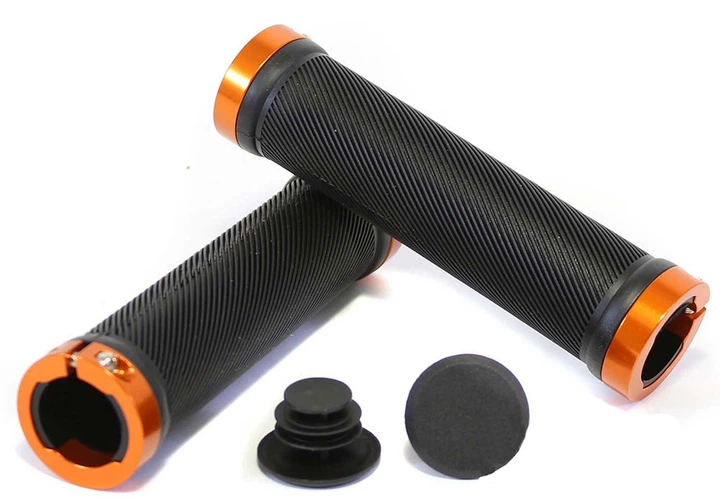 Грипси (ручки керма) SPELLI SBG-6703-Lock, Чорні з Помаранчевими локами, прямі, круглі, довжина 132 мм FM (U-790)