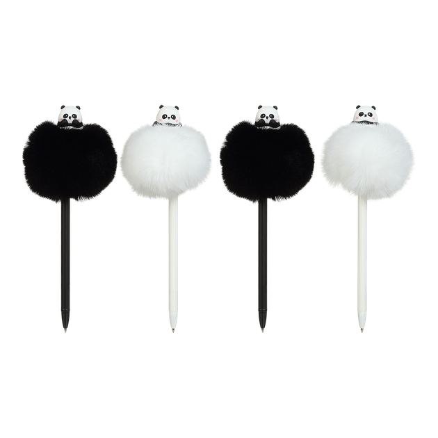 Ручка кулькова, Fluffy black-white Panda, 0,7 мм, синя
