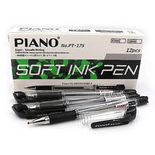 Ручка олія "4км" 0,7мм, чорна, грип, ціна за 12 штук Piano (175ptbk)