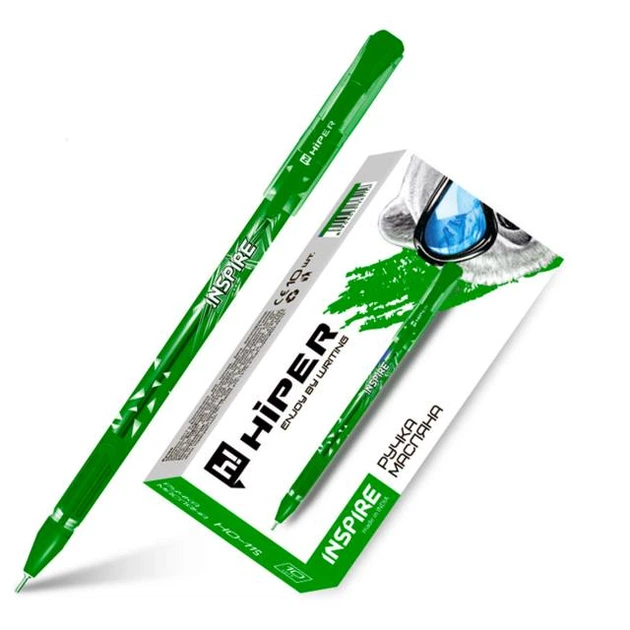 Ручка масляна Hiper Inspire, 0,7 мм, зелена, в упак. 10шт. HO-115зел