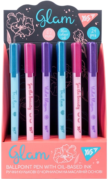 Набір ручок YES Масляна Glam 0.7 мм Синя 24 шт (412014) (5056137165797)