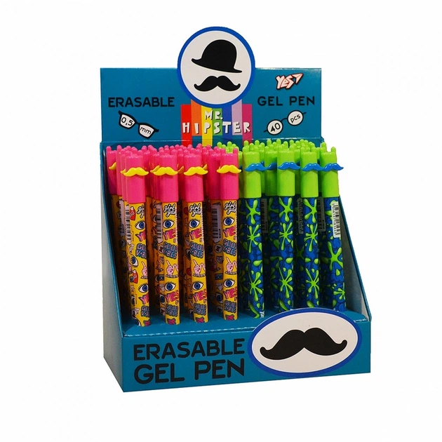 Ручка гелева пиши-стирай Yes Mister Hipster синій mix 2 дизайну 0,5 мм (411919)