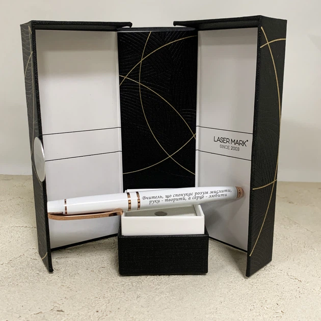 Красива металева ручка для вчителя з гравіюванням цитати, біло-золотиста, подарункова коробка