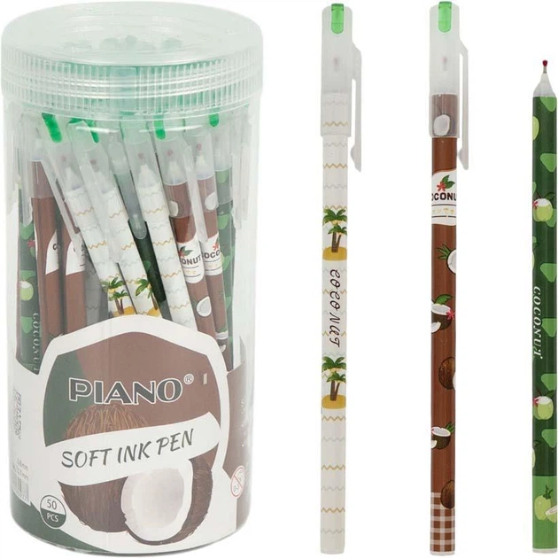 Ручка масляна Piano "Coconut" 0,6/0,7мм, Soft ink Pen, PT-1105 в банці (50 ШТУК)--sh477