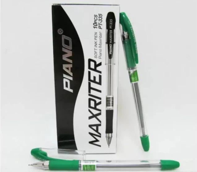 Ручка масляна Piano Maxriter, 0.6 мм, зелена, грип, 10 шт.