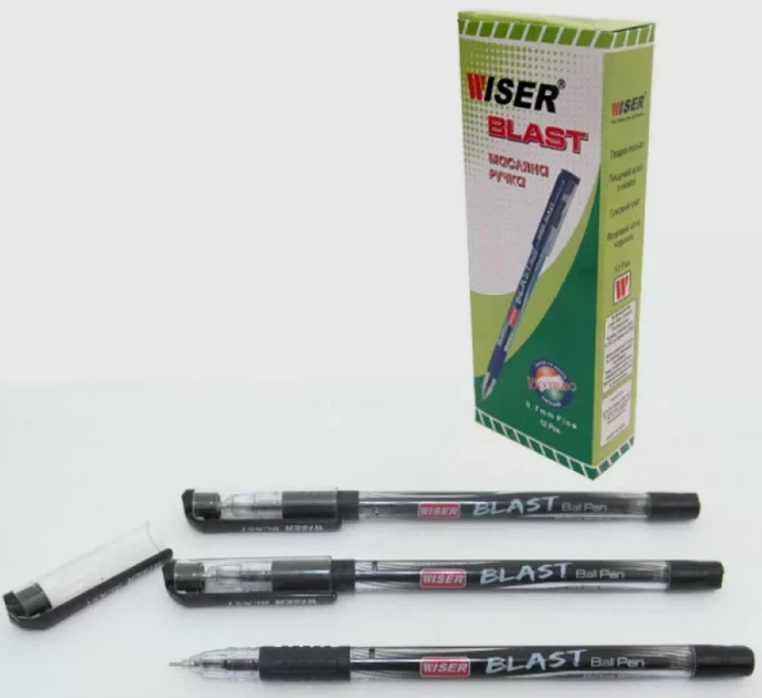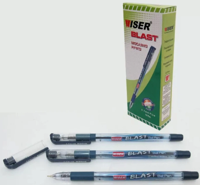 Ручка масляна Wiser Blast, 0.7 мм, із грипом, чорна (українською), 12 шт.