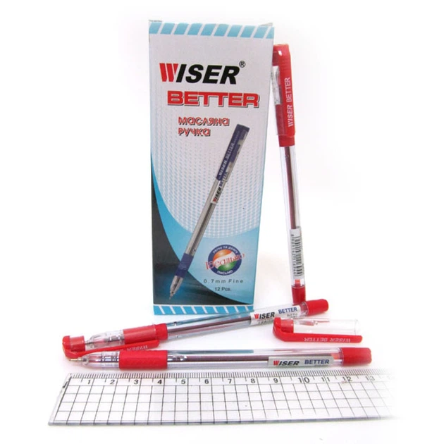 Ручка масляна Wiser Better, 0.7 мм, із грипом, червона, 12 шт.