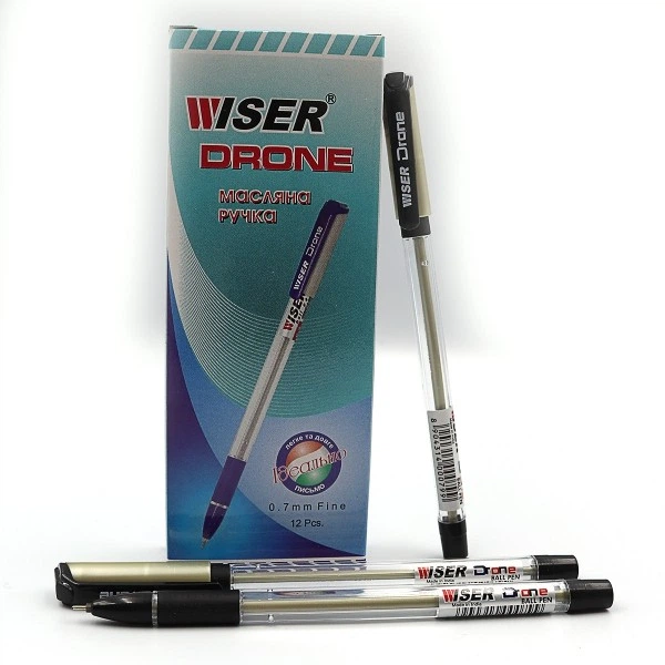 Ручка масляна Wiser Drone, 0.7 мм, із грипом, чорна (українською), 12 шт.