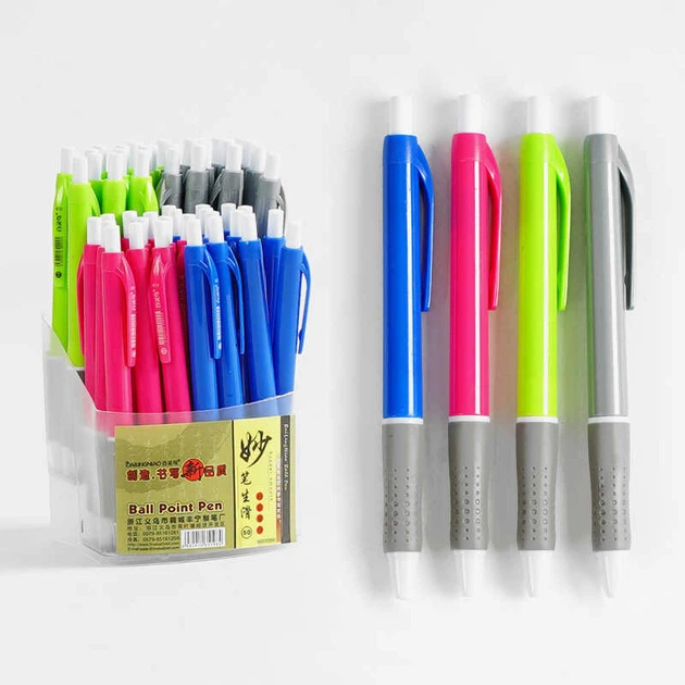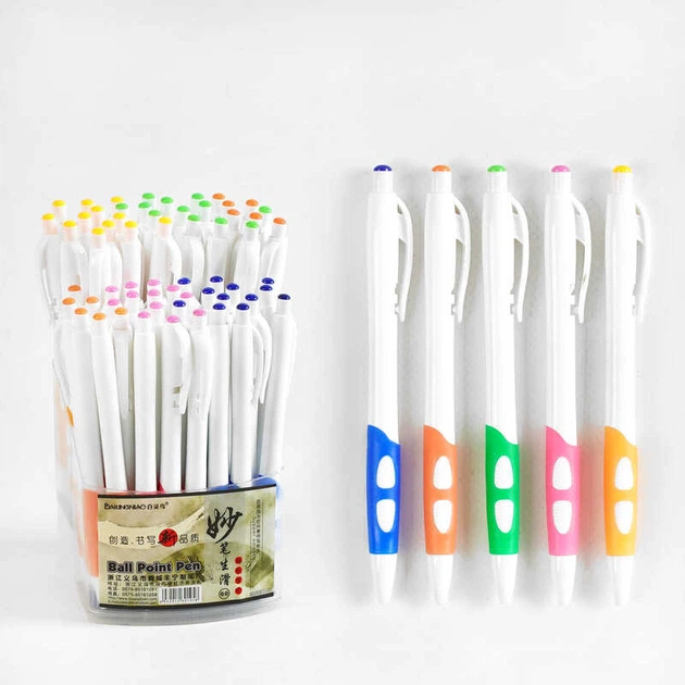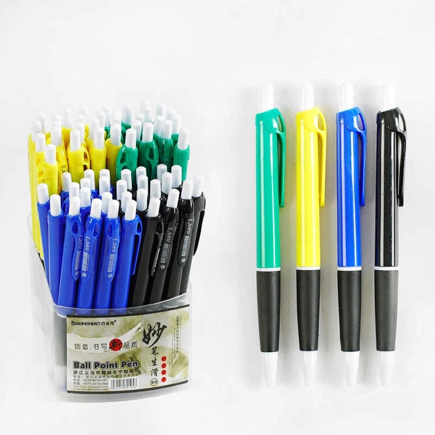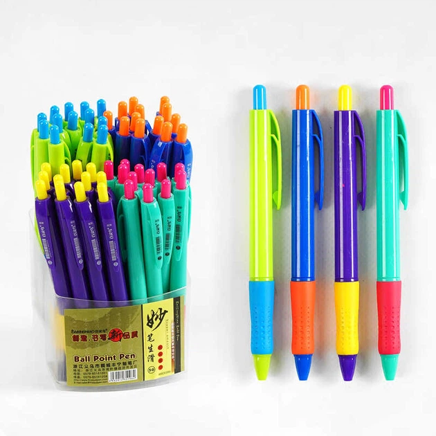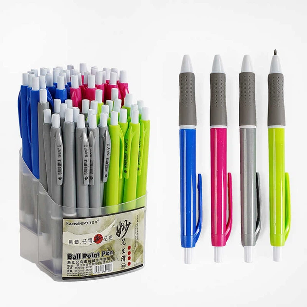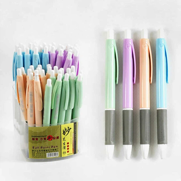 Набір кулькових ручок D 35199 ЦІНА ЗА 50 ШТУК У БЛОЦІ, 4 кольори, синя паста
