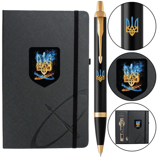 Набір Parker IM UKRAINE Black GT BP Палаючий Тризуб (кулькова ручка + блокнот Parker)