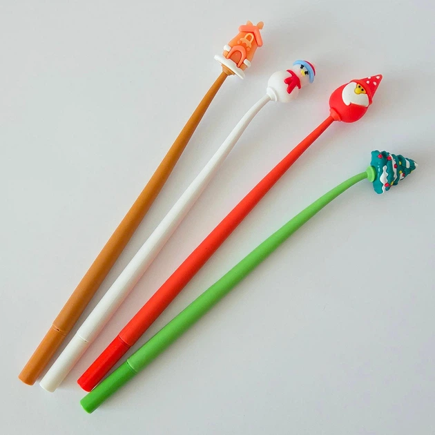 Набір новорічних гелевих ручок 4 шт з фігурками (Ялинка, Санта, Сніговик, Будиночок) Чорне чорнило