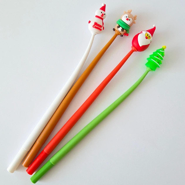 Набір новорічних гелевих ручок 4 шт (Олень, Санта, Сніговик, Ялинка) Чорне чорнило