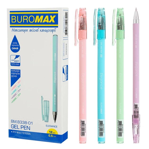 Набір гелевих ручок ELEGANCE, 12 шт., 0.5 мм, синій, BM.8338-01