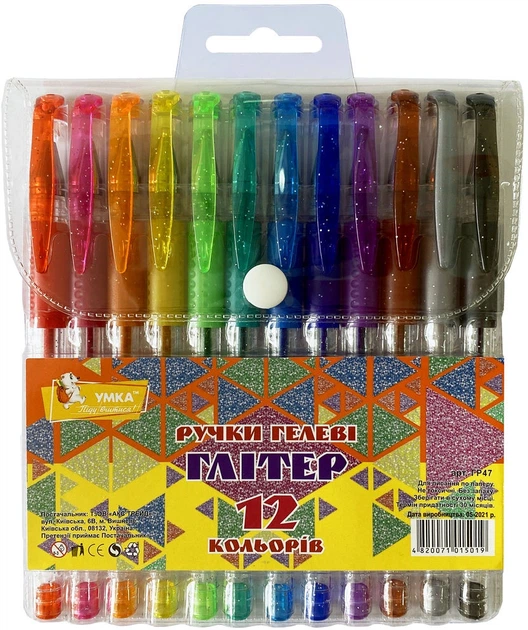 Набір гелевих ручок Умка Glitter з гумовим грипом 12 кольорів (ГР47) (4820071015019)