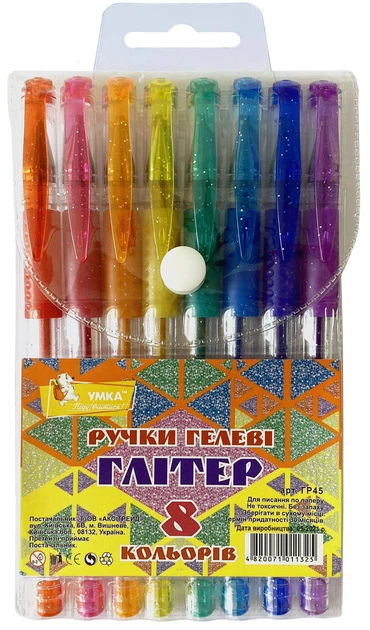 Набір гелевих ручок Умка Glitter з гумовим грипом 8 кольорів (ГР45) (4820071011325)