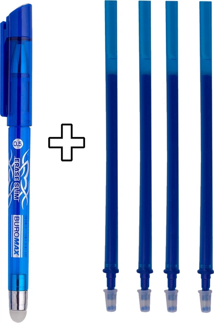 Ручка гелева Buromax Erase Slim Пиши-витирай 0.5 мм Синя + стрижні 4 шт. (BM.8304-01)