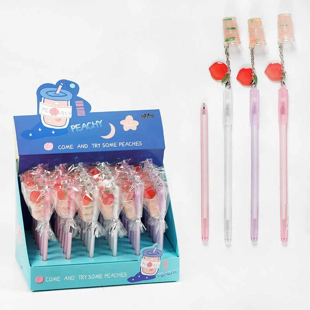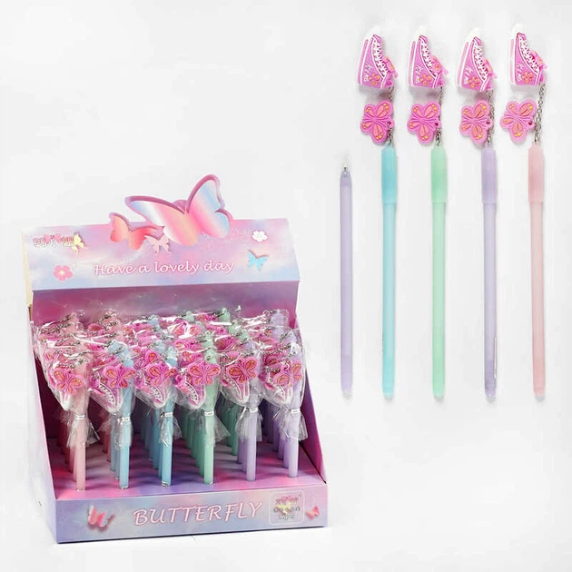 Ручка D 34823 ЦІНА ЗА 36 ШТУК У БЛОЦІ, гелева, синя та чорна пащі, прикраса