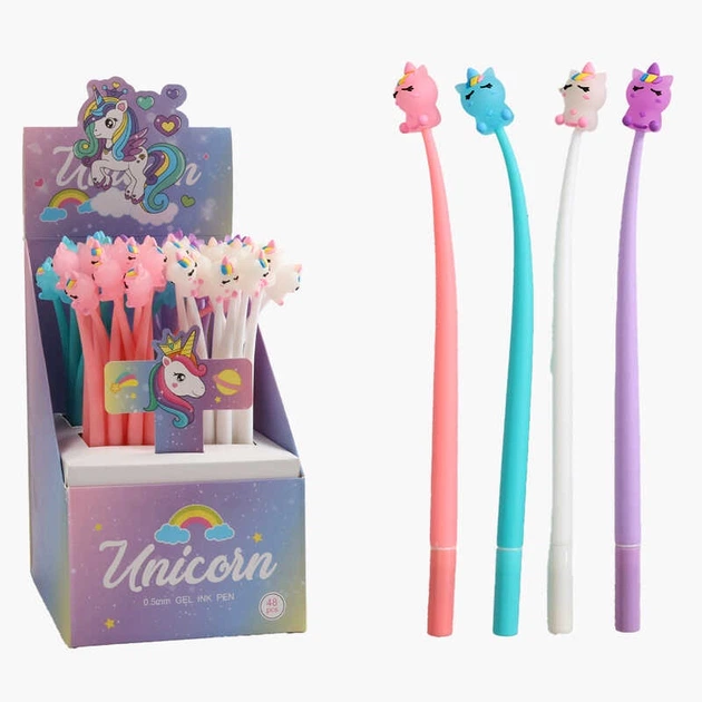 Ручка C 72655 ЦІНА ЗА 48 ШТУК У БЛОЦІ, гелева, синя паста, герой, прикраса, в коробці