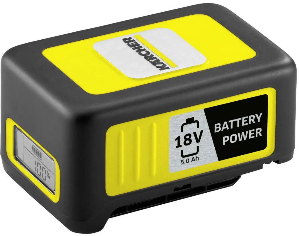 Сменный аккумулятор 18 В/5,0 А·ч с инновационной технологией реального времени имеет встроенный ЖК-дисплей для отображения уровня заряда батареи. Подходит для использования во всех устройствах на платформе Kärcher 18 V Battery Power.