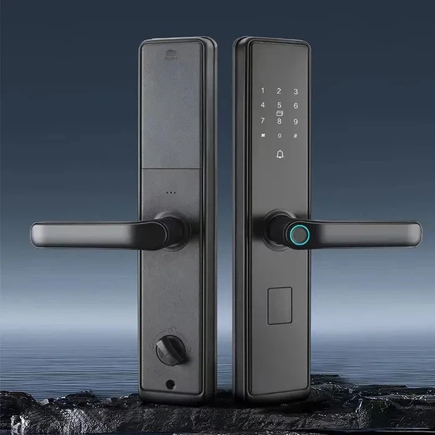 Смарт замок кодовий розумний дверний KHS-DA01 з відбитком пальця та ключ-картою та розблокуванням по обличчю, чорний