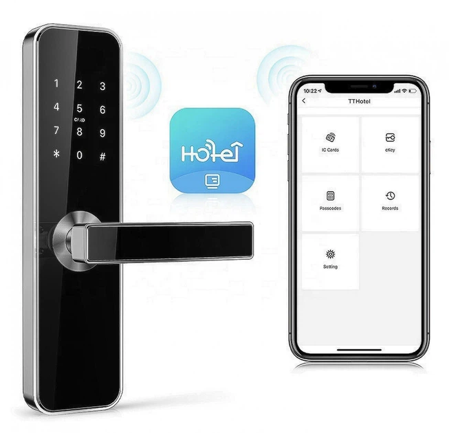 Замок електронний готельний з ID доступом 2014F врізний з поділеними накладками