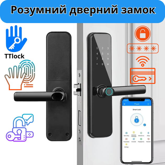 Розумний дверний замок з Wi-Fi, кодовий з відбитком пальця і ключ-картою, KHS-D11