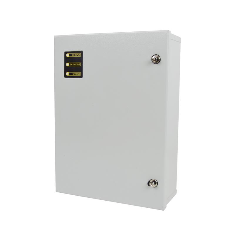 Безперебійний блок живлення імпульсний, двоканальний, вихід: 24В/5А, клемник; вхід: ~190-240В, клемник; металевий корпус з кришкою та замком; стабілізація напруги; захист від глибокого розряду. Можливе встановлення 2 акумуляторів 7Ah. Розміри 338 х 308 х 83 мм