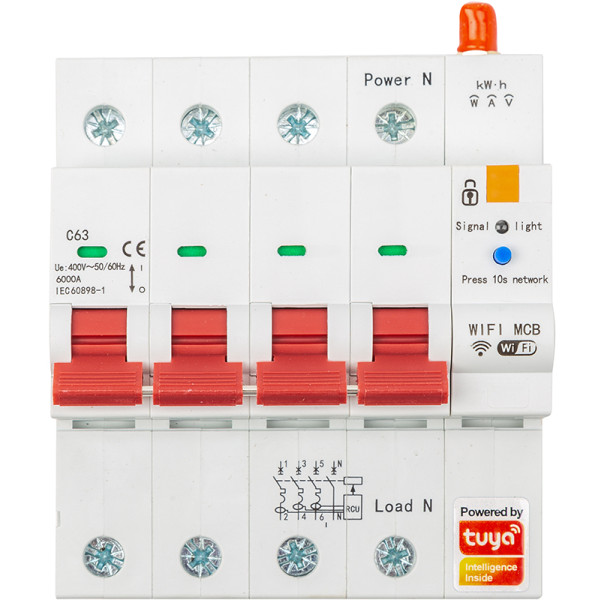 TUYA Розумний 4-канальний перемикач TUYA Wi-Fi, 63A