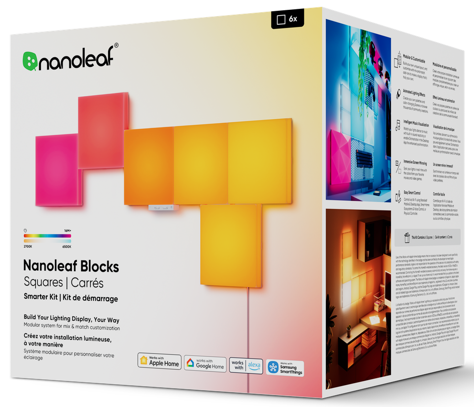 Розумні світлові панелі Nanoleaf Blocks Squares Smarter Kit з підтримкою HomeKit і Matter — 6 шт. (N8100K02-6BS)
