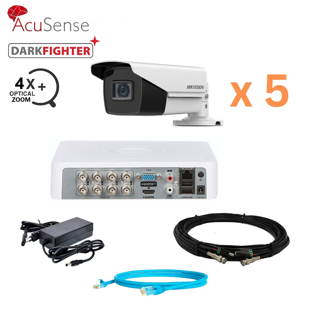 Hikvision 2Mp-THD-OUT-Acusense-ULTRAZOOM-DS-2CE19D3T-AIT3ZF 5 камер Комплект відеоспостереження