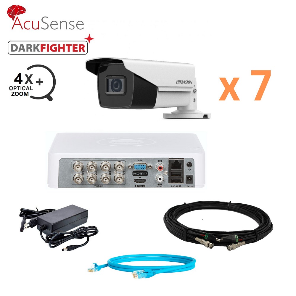 Hikvision 2Mp-THD-OUT-Acusense-ULTRAZOOM-DS-2CE19D3T-AIT3ZF 7 камер Комплект відеоспостереження