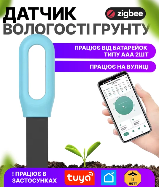 Розумний датчик вологості ґрунту Zigbee Tuya Smart Life