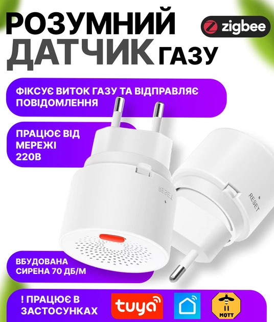 Датчик витоку газу з сиреною, розетка 220В Zigbee Tuya Smart Life