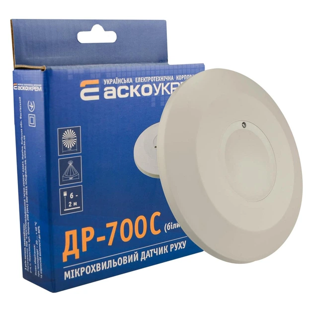 Мікрохвильовий датчик руху АСКО-УКРЕМ ДР-700C 2000Вт 360град 8 м IP20 білий (A0220010048)