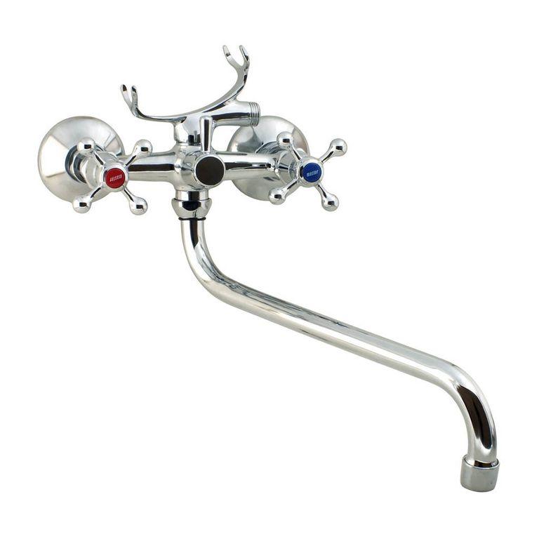 ки :Ед. в упак. : 10Объем ящ. : 0,056Вес ящ. : 18,600Вид изделия : Смесители для ванны с длинным изливомГарантия на детали смесителя (мес) : 6Гарантия на корпус смесителя (мес) : 24Картридж или кран букса : Кран буксаКомплектация : Шланг 150 см, ручная лейка, держатель для лейки, чашки, эксцентрики, резиновые прокладкиМаксимальна