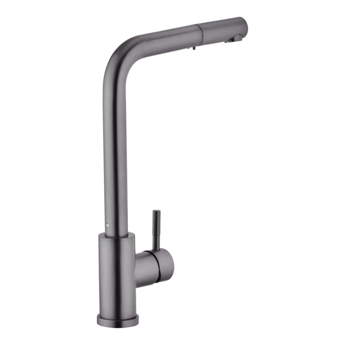 Смеситель для кухни с выдвижным изливом Kroner KRP Edelstahl Klassisch - PVD03917 представляет собой стильное и функциональное решение для вашей кухни. Основные характеристики: Серия: Edelstahl Klassisch. Назначение: Для кухни. Тип управления: Однорычажный. Материал: Нержавеющая сталь. Способ монтажа: Врезной. Тип крепления: Гайка. Тип подвода воды: Гибкий 1/2". Цвет: Графит. Поверхность: Брашированная. Диаметр